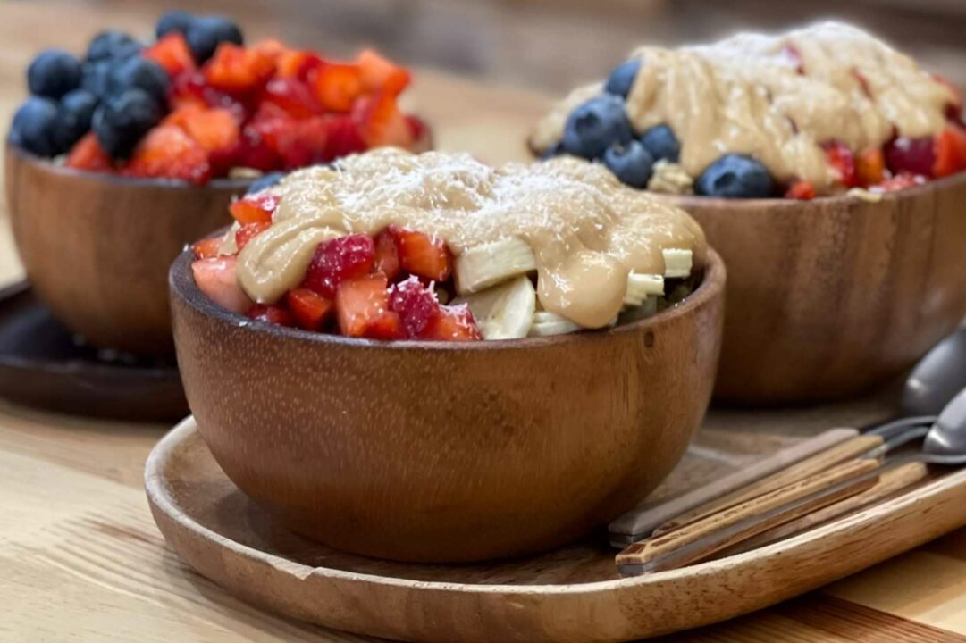 En AMAZONIA ACAI, este fruto se presenta en un bowl junto a otras frutas como la fresa, el plátano, el kiwi, la piña, el mango y el coco. Estos platillos se convierten en una excelente opción para el desayuno o incluso un brunch saludable. Además, agregan otros alimentos como granola, frutos secos, semillas de lino, frutos del bosque y yogurt griego, entre otros, para obtener un plato equilibrado y muy nutritivo. Los comensales pueden escoger en el menú alguna de sus combinaciones o crear un bowl con sus topping favoritos, a gusto.