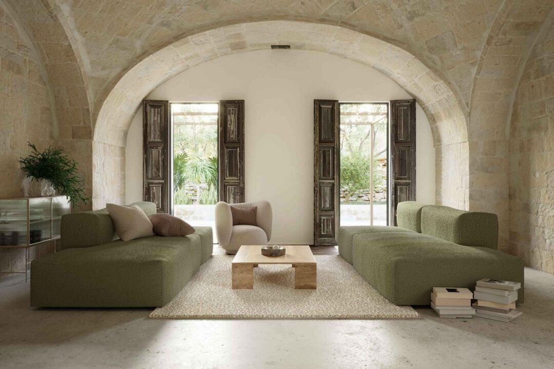 Además, presenta dos nuevas propuestas en tendencia que se incorporan a su catálogo: Charm, un tejido chenilla versátil y resistente, con toques bicolor que aportarán textura y profundidad en los tapizados. Por otro lado, Rioma continúa apostando por la pana para esta temporada, un tejido que se dejó ver la temporada pasada en elementos decorativos como cojines o pufs, pero que este año ha dado el salto a muebles de mayor tamaño como sofás.