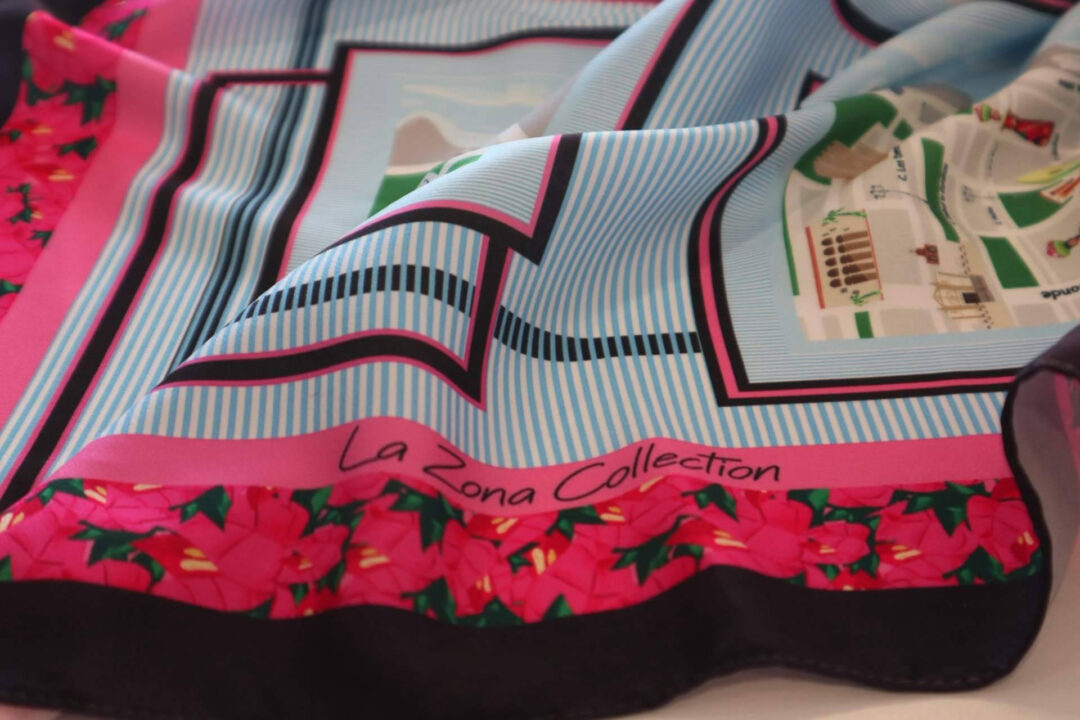 El lanzamiento de La Zona Collection introdujo un formato performativo e inmersivo, donde modelos y escenografía transformaron el espacio en una experiencia sensorial. Cada pieza de la colección, especialmente los pañuelos, evoca monumentos y rincones icónicos de la Zona Colonial, convirtiéndose en un soporte narrativo que trasciende la función estética para representar un diálogo entre pasado y presente.