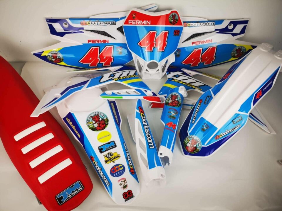 Además del catálogo prediseñado, la empresa ofrece una amplia gama de adhesivos personalizados, en los que el cliente puede configurar colores, dorsales, nombre del piloto, sponsors y detalles gráficos. Esta opción es especialmente valorada por equipos, pilotos amateurs o usuarios particulares que buscan una identidad propia sin renunciar a la calidad de un acabado profesional.