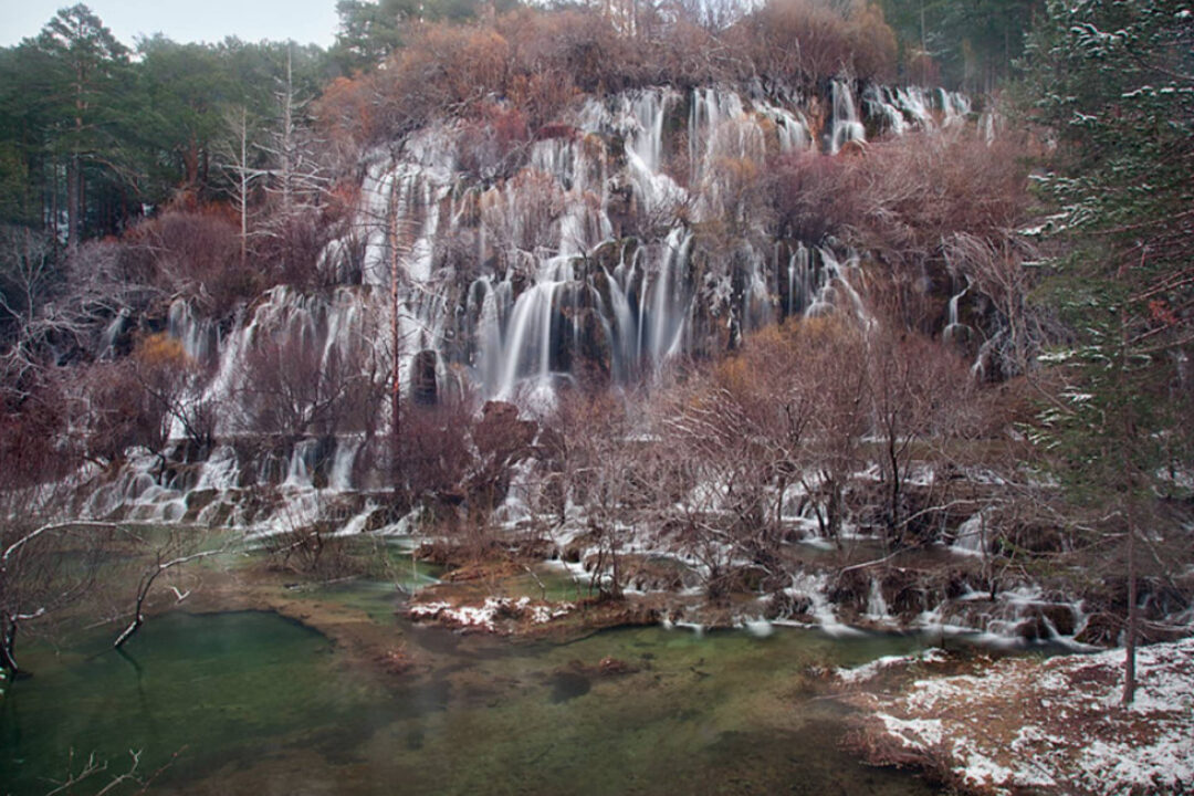 El nacimiento del río Cuervo se encuentra a 1.469 metros de altitud, en el corazón del Parque Natural de la Serranía de Cuenca. Es uno de los ríos más singulares de la provincia, conocido por el espectacular conjunto de cascadas y formaciones tobáceas que origina en sus primeros metros.